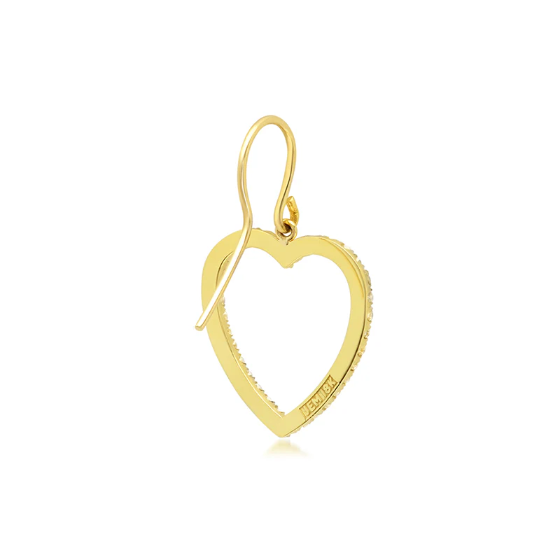 Love at first sight! Our large open heart earrings are handcrafted in 18-karat yellow gold, set with shimmering diamonds and hang from a delicate ear wire. A symbol of love, add the wear-forever pair to elevate your everyday, signature look.