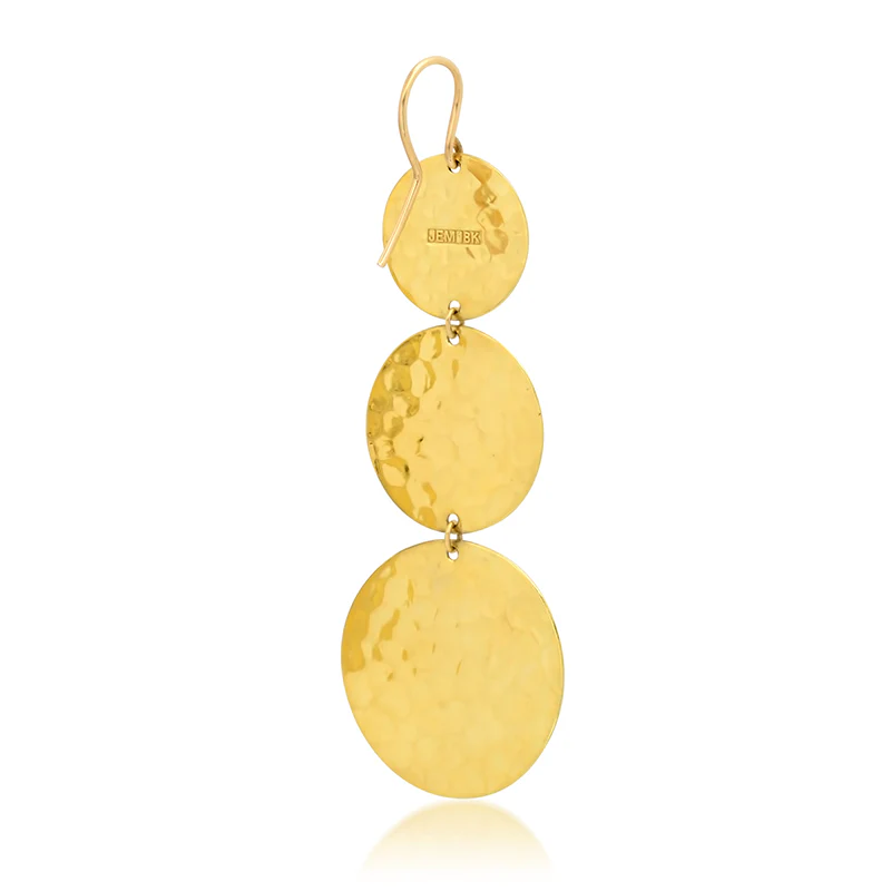 One of our favorites from the collection, this chic, standout pair of Graduated Hammered Disc earrings are crafted from hammered, subtly textured 18-karat gold and set on delicate ear wires. Timeless, sophisticated and ultra-lightweight, wear yours to transition from day to night with ease.